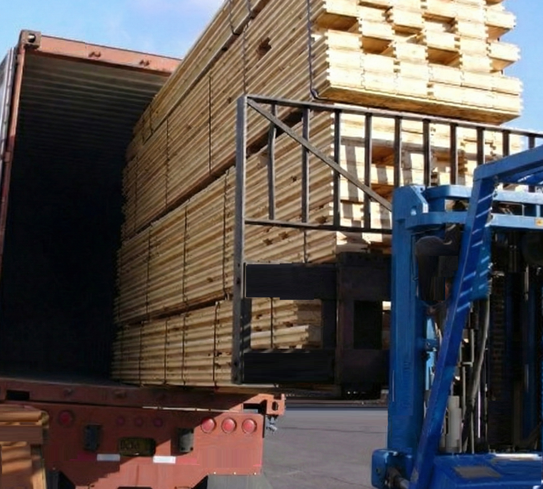 Wrapped timbers and loads covered/protected as needed.